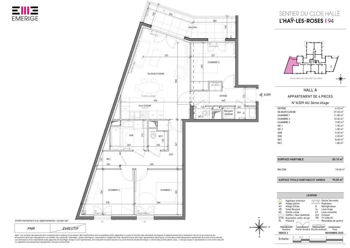 SANS HONORAIRES. RESIDENCE HAYROSES-HALLE - LIVRAISON FIN AVRIL 2026 Nous avons le plaisir de vous proposer ce T4 de 86 m2 situé dans notre belle résidence 'HAYROSES-HALLE ', comprenant : Une entrée avec placard, une salle de bain et une salle d'eau avec un WC , un séjour avec cuisine ouverte, 3 chambres et un balcon et deux places de parking compris. Charges incluses : eau chaude, eau froide et chauffage collectif. La résidence respectera les nouvelles normes environnementales grâce à l'utilisation de techniques de construction bas carbone et biosourcées et les logements seront raccordés au réseau de chaleur urbain permettant d'atteindre 98% d'énergie renouvelable. La nature sera présente sur les toits avec des toitures végétalisées et des plantations sous serres qui seront accessibles aux résidents. 7, Boulevard Paul Vaillant-Couturier, 94240 L'Hay-les-Roses VISITE SUR LOGEMENT TEMOIN ET CHOIX SUR PLAN. SANS HONORAIRE. Référence à rappeler lors de nos échanges : A896 - 385267 Les informations sur les risques auxquels ce bien est exposé sont disponibles sur le site Géorisques : www.georisques.gouv.fr Logement Locatif Interm.