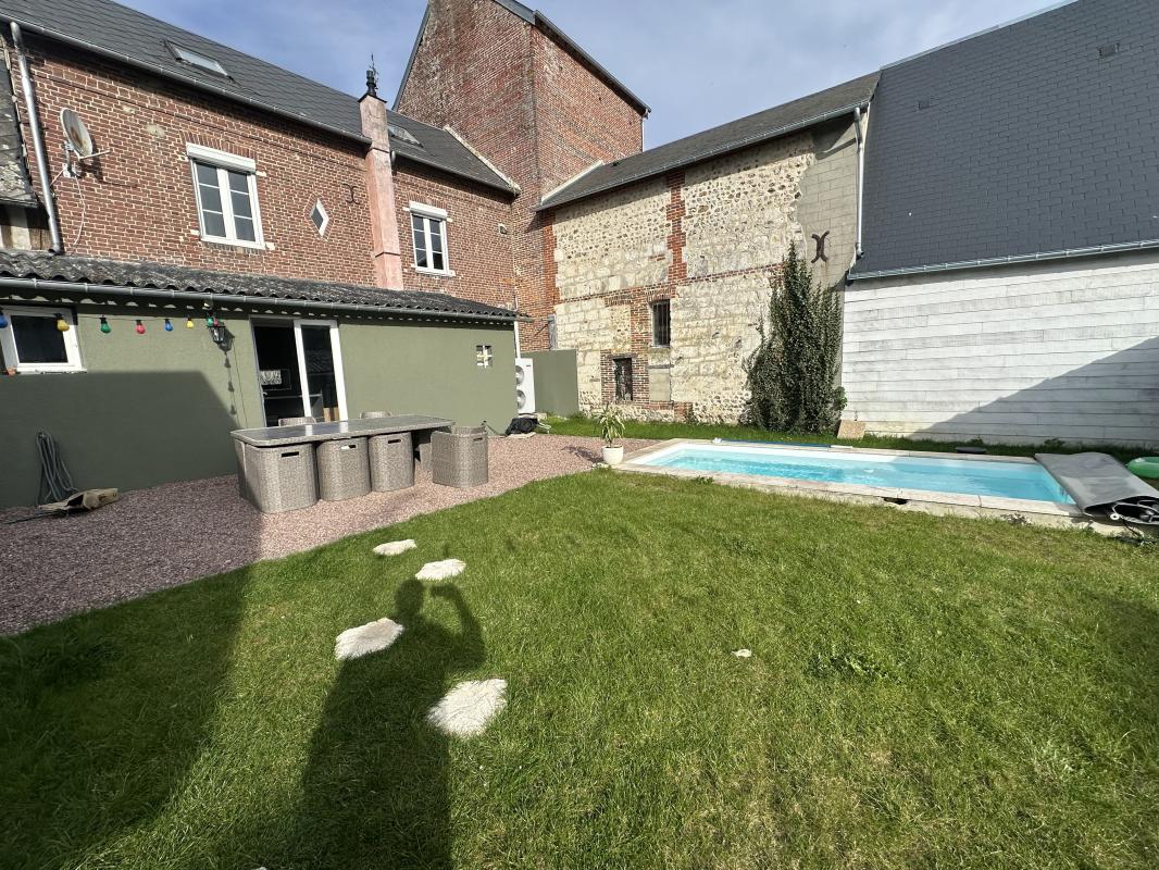 La maison dispose d'une terrasse offrant un espace extérieur privilégié pour profiter des belles journées ensoleillées. La piscine enterrée ajoute une touche de luxe et de détente à l'ensemble.