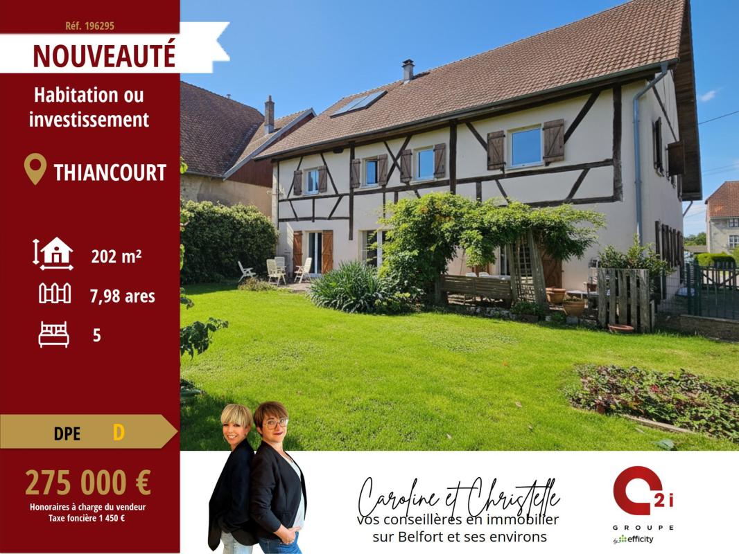 Caroline et Christelle, mandataires en immobilier C2i by Efficity, vous proposent cette ferme alsacienne rénovée de plus de 200 m² habitables, située sur un terrain clos et arboré de 7,98 ares.