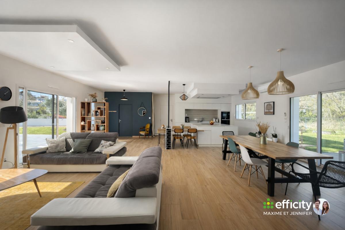 Prestation haut de gamme, faible consommation énergétique, chauffage au sol et chauffe-eau thermodynamique.