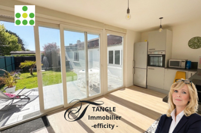 Maison qui se compose au rez-de-chaussée : d'une entrée, d'une grande pièce de vie agréable ouverte sur une cuisine équipée, le tout ouvert sur un joli jardin exposé sud entièrement clos.