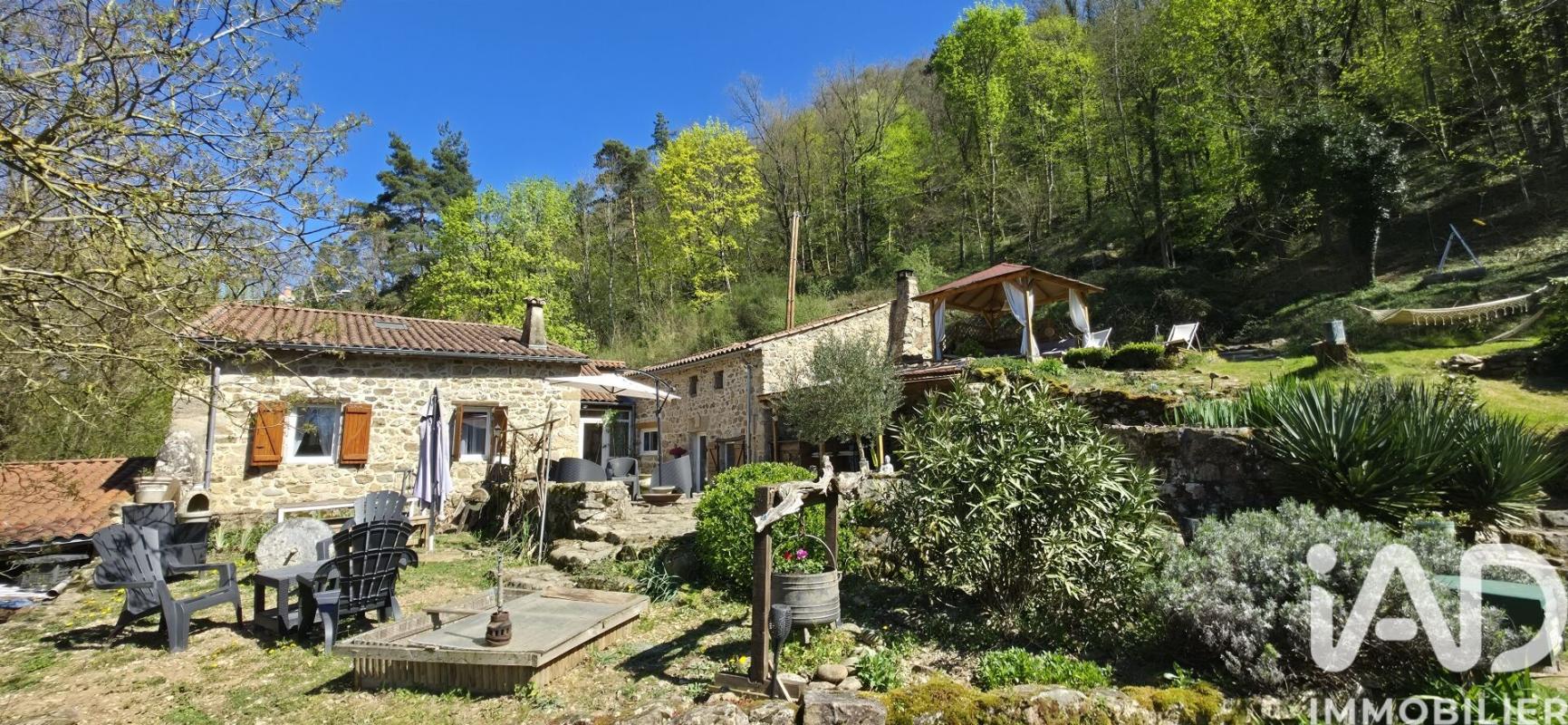 Iad France - Isabelle Lallemand vous propose : Nichée dans un écrin de verdure, cette superbe maison en pierre propose environ 144 m² de surface habitable et offre un cadre de vie rare, bercé par le doux murmure de la rivière du Doux, toute proche. Dès l'entrée, le charme opère. Le rez-de-chaussée propose un séjour chaleureux, une cuisine indépendante traversante ouverte sur le salon, ainsi que trois chambres, dont deux avec leur salle d'eau privative. Une salle d'eau avec WC et une buanderie complètent ce niveau. Depuis le salon, un escalier mène à une belle mezzanine, aujourd'hui utilisée en salle de jeux, ainsi qu'à une pièce de stockage. Un second escalier, accessible depuis le séjour, dessert deux pièces en enfilade sous les toits, idéales pour des espaces annexes, coin lecture ou rangements, avec une hauteur sous plafond majoritairement inférieure à 1,80 m. Côté dépendances, la maison dispose d'une magnifique cave voûtée, d'un abri pour le stockage du bois et d'une seconde cave accueillant le ballon thermodynamique. Le confort est assuré par un chauffage par pompe à chaleur, complété par un insert à bois, pour une ambiance douce et authentique. La maison est alimentée par une source naturelle et reste également raccordée à l'eau de ville. Le vrai plus : À proximité immédiate de la rivière, une charmante maison indépendante d'environ 66 m², avec eau et électricité, propose une grande pièce de vie, une chambre, une salle d'eau et des WC. Elle bénéficie d'un accès privilégié au Doux avec sa plage privative -- un lieu idéal pour accueillir famille, amis ou envisager un projet locatif. Un bien rare, authentique et hors du temps, parfait pour les amoureux de la nature, du calme et de la pierre. Située sur la commune de Boucieu le Roi, à 15 minutes de Lamastre, 20 minutes de Tournon sur Rhône et 45 minutes de Valence. Honoraires d'agence à la charge du vendeur. Information d'affichage énergétique sur ce bien : classe ENERGIE C indice 174 et classe CLIMAT B indice 6. Les informations sur les risques auxquels ce bien est exposé, y compris l'obligation légale de débroussaillement, sont disponibles sur le site Géorisques : http://www.georisques.gouv.fr.La présente annonce immobilière a été rédigée sous la responsabilité éditoriale de Mme Isabelle Lallemand mandataire indépendant en immobilier (sans détention de fonds), agent commercial de la SAS I@D France immatriculé au RSAC de AUBENAS sous le numéro 839607645, titulaire de la carte de démarchage immobilier pour le compte de la société I@D France SAS. (gedeon_6727_32683600)
