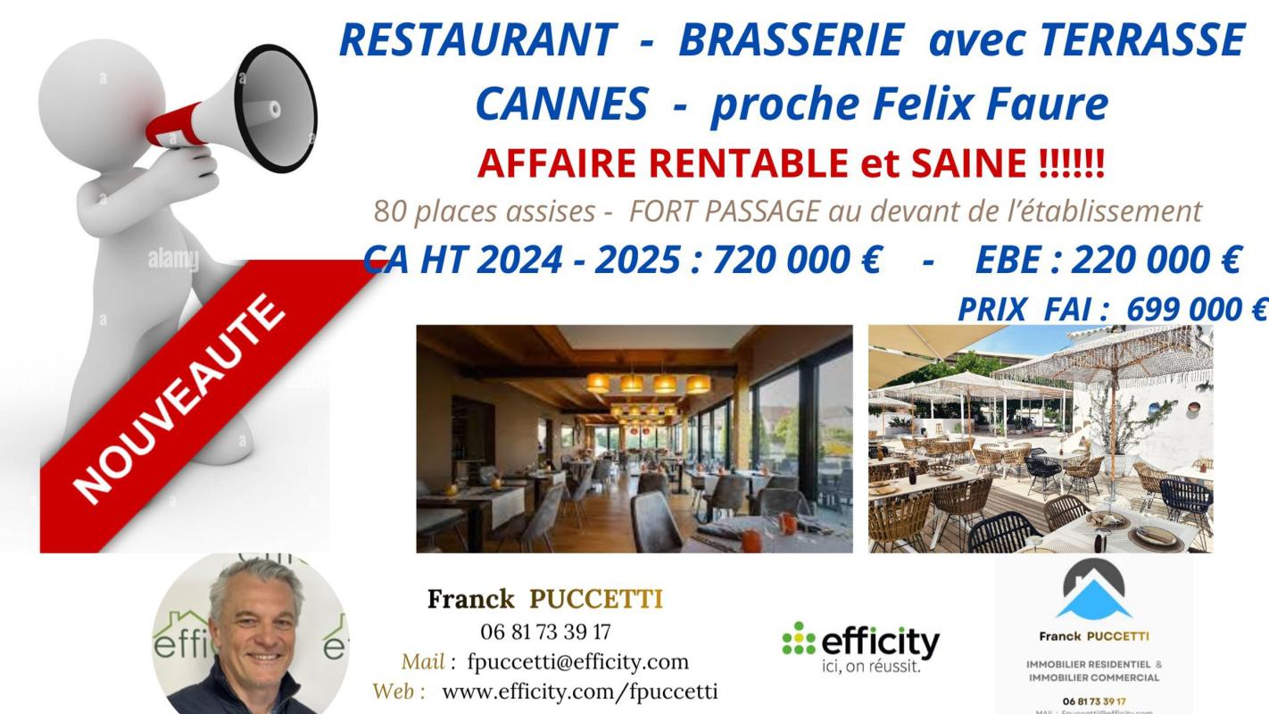 Franck PUCCETTI vous présente en MANDAT D'EXCLUSIVITE, ce fond de commerce de RESTAURANT avec un emplacement TOP PREMIUM.