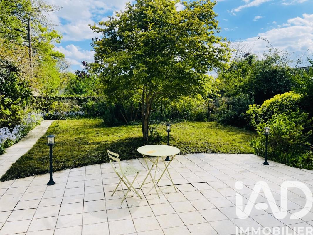 Le jardin arboré entièrement clos (à l'arrière de la maison) possède une belle terrasse exposée Sud, sans aucun vis à vis.